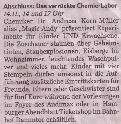 In der Zeit der Sommerpause kann es beim Beantworten von Anfragen zu Verzögerungen kommen. Ich melde mich aber zurück. Ab September finden wieder neue Chemiegartenkurse statt. Schöne Ferien!